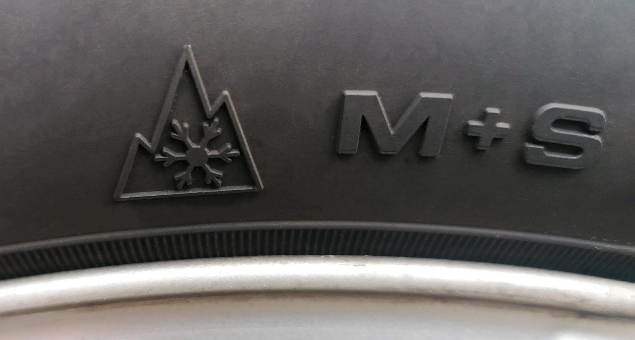 I hårdt vinterføre kræves 3PMSF-mærkede dæk (Three Peak Mountain Snowflake det alpine snefnug-symbol) — M+S alene er ikke tilstrækkeligt
